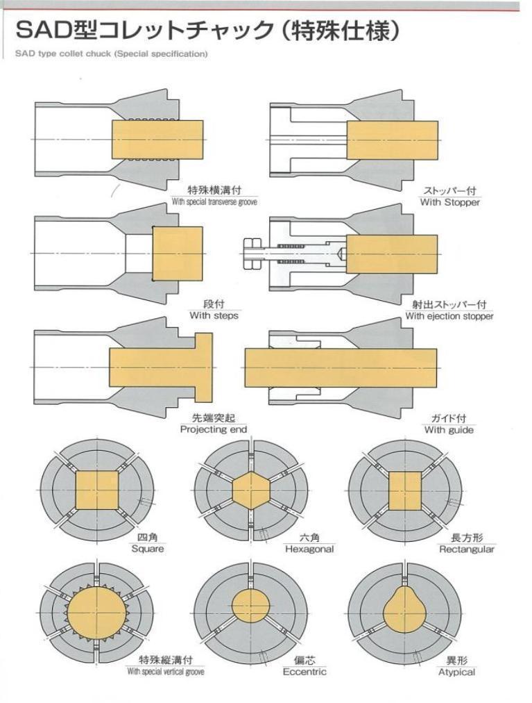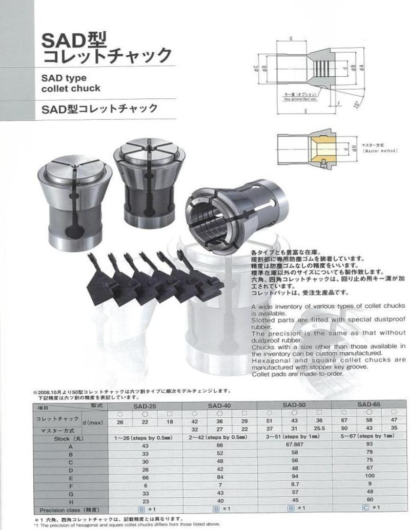 SAD type collet chuck as below ; SAD25 collet , SAD40 collet , SAD50 collet , SAD65 collet. Product Detail :