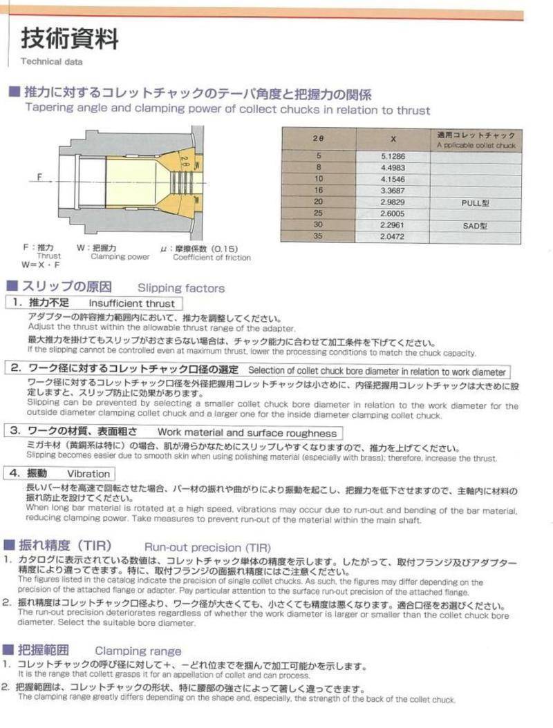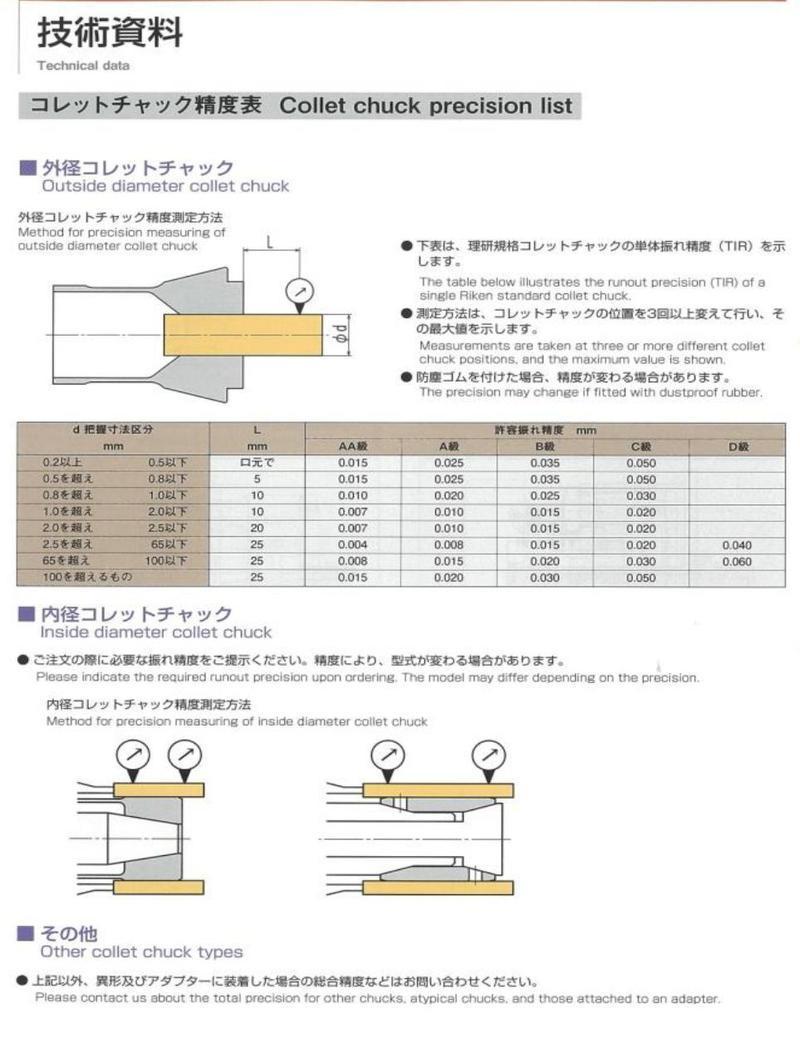 E-Catalog > 5. RIKEN SEIKI Collet Chucks > RIKEN SEIKI Technical Data